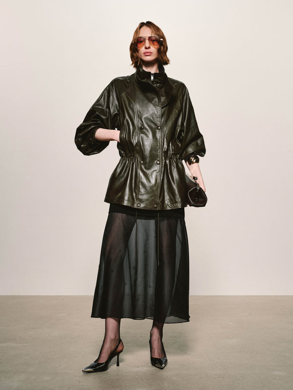 A vapor-light mesh maxi that reads more atmosphere than garment — translucent volume, softened structure, and a quiet sense of motion with every step. Fabric80% Polyester10% Viscose8% Elastane CareGentle wash at 30°C.Do not tumble dry. 177 cm / 5'10", wearing...
